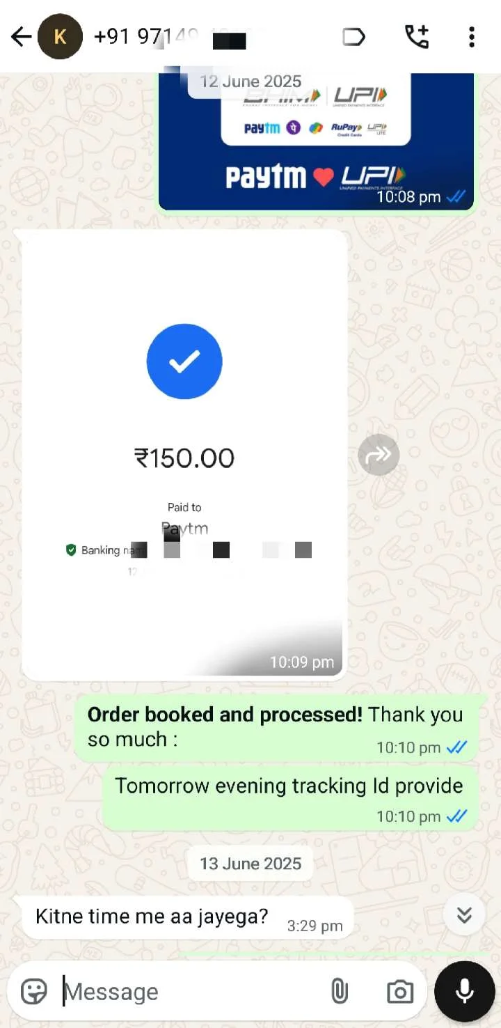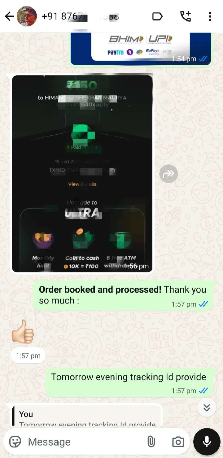 - Tracking ID will be shared via WhatsApp — please respond or ask your customer to track it.