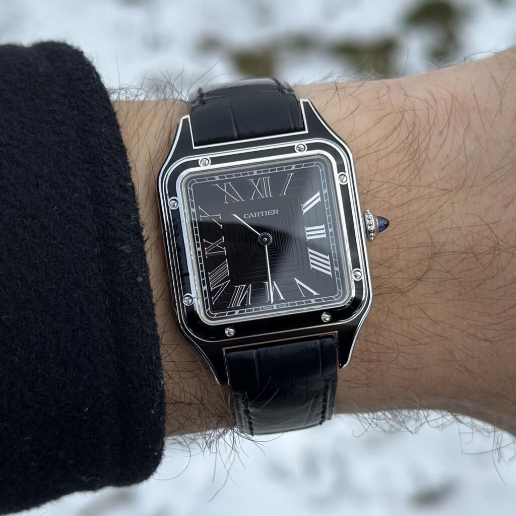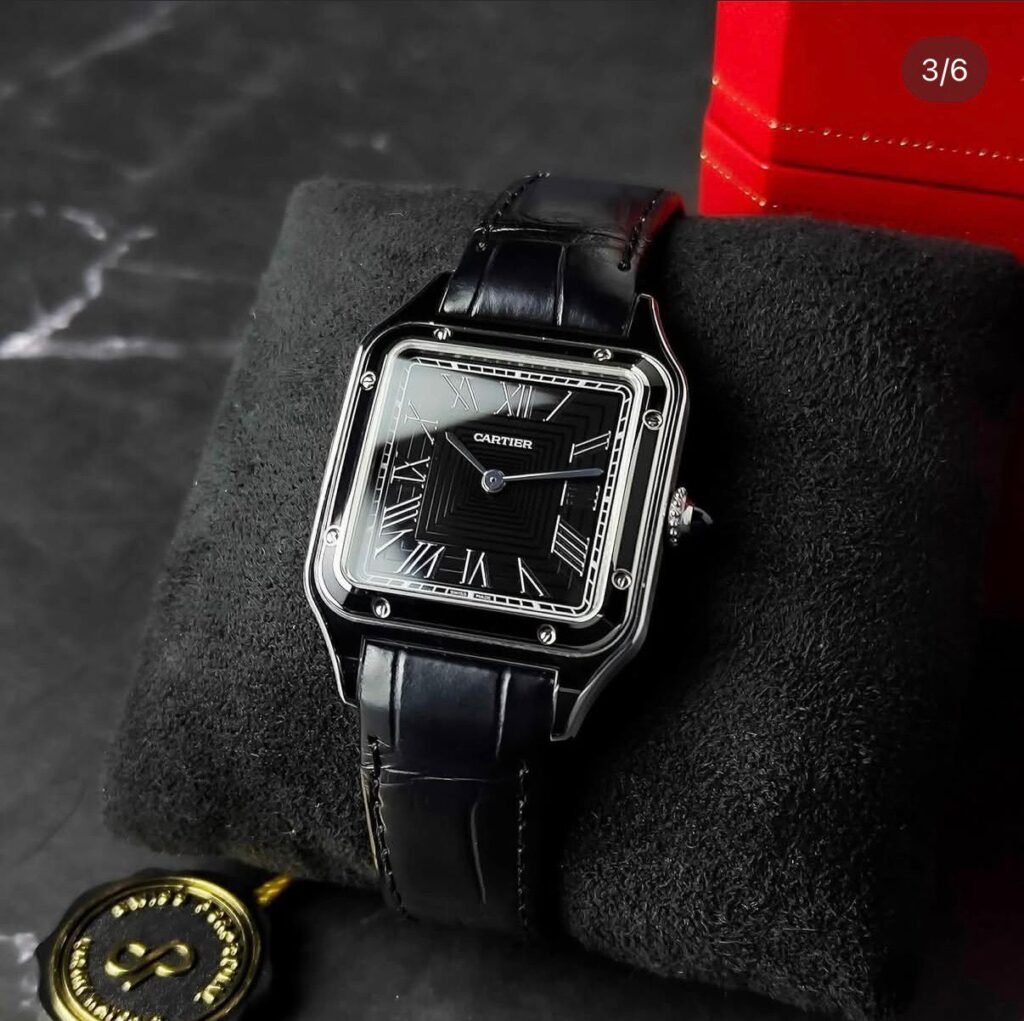 👉🏽 Features: Powered by original Japanese quartz machinery, Stainless-steel square and slim case with lacquered bezel and lugs, Anti-reflective sapphire glass on a Black dial with Roman indices and hands, fastened by a high quality croc Black leather strap with a pin buckle.