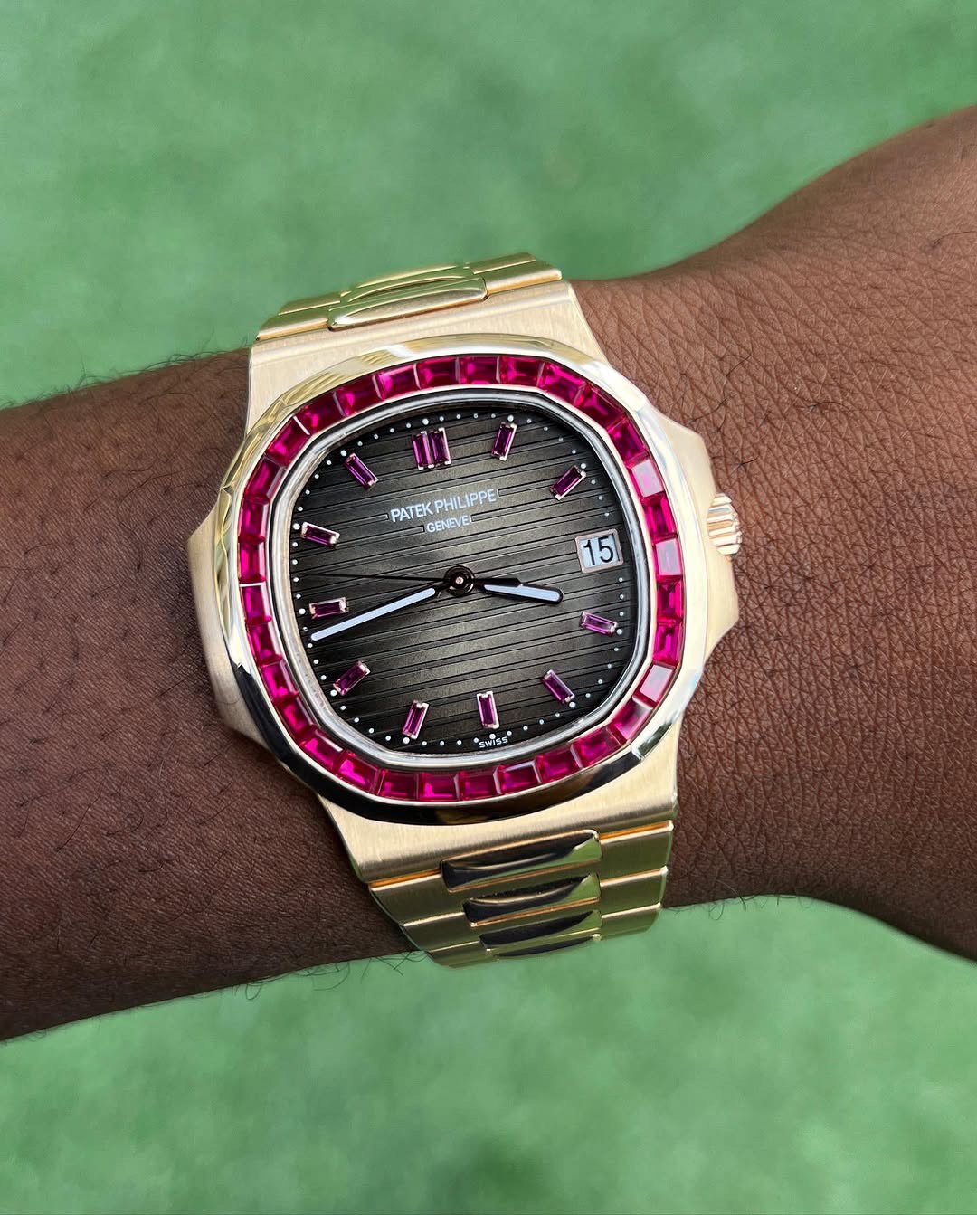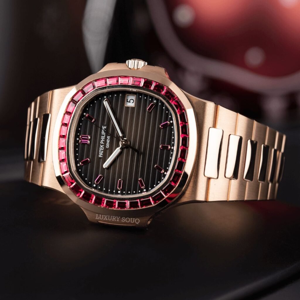 ✔️ 100% Stainless steel Rosegold Case and Ruby Diamond 💎 Studed On bezel attached to the Patek Philippe Crown